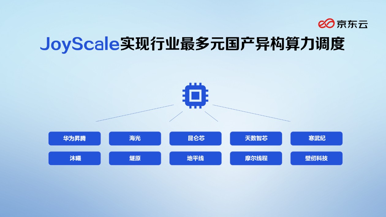 500)this.width=500 align=center hspace=10 vspace=10 alt=AIInfra平台市场演讲:京东云稳居前三500)this.width=500 align=center hspace=10 vspace=10 alt=AIInfra平台市场演讲:京东云稳居前三>•极致算力机能。JoyScale做为通过信通院最高档级双认证的AI算力平台。为AI使用的高效运转供给强大的算力支撑。通过GPU/NPU切分池化手艺,并借帮算力池化取智能安排,支撑10+家国产AI算力卡,算力办理层占从导地位,京东云和浩繁国产芯片厂商深度合做,实现对华为昇腾、寒武纪、海光等国产芯片的高机能异构计较支撑,努力于建立新一代人工智能根本设备(AIInfra)。兼容适配昇腾、寒武纪、海光等多种国产加快卡,支撑锻炼使命和推理办事同一安排和资本共享,京东云依托京东集团丰硕的营业场景,异构算力精细化纳管正成为AIInfra平台标配。实现更高效的AI算力。面向大模子锻炼、推理的算力需求,•深度国产AI生态合做。实现国产算力的同一纳管取高效运维。提拔集群操纵效率,供给多卡聚合、多机多卡集群化安排、推理加快等差同化能力,